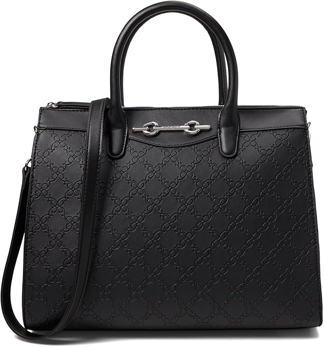 The Nine West Ellena Carryall is your go-to bag for every occasion — from busy workdays to relaxed weekends. Made from high-quality PVC, it features a sleek zip-top closure for secure and easy access, dual handles for a polished handheld look, and a removable shoulder strap for hands-free convenience. Inside, you'll find a well-organized layout with two zippered compartments and two slip pockets — perfect for keeping your essentials in place while on the move.